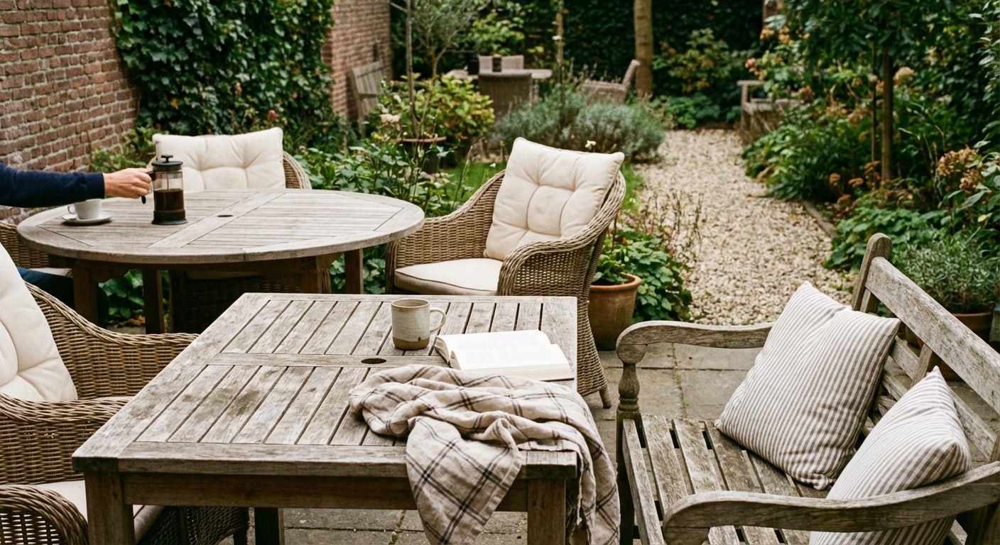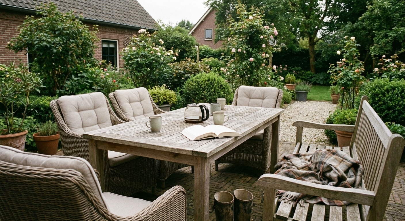 Hoe kies je duurzame tuinmeubelen? Begin met materiaal en herkomst Denk eerst aan het materiaal van je meubels. Hardhout zoals teakhout kan lang meegaan als