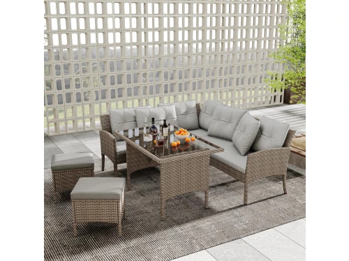 Merano dining loungeset 6 personen | wicker + aluminium | Ash Grey | 5-delig – 276x213cm