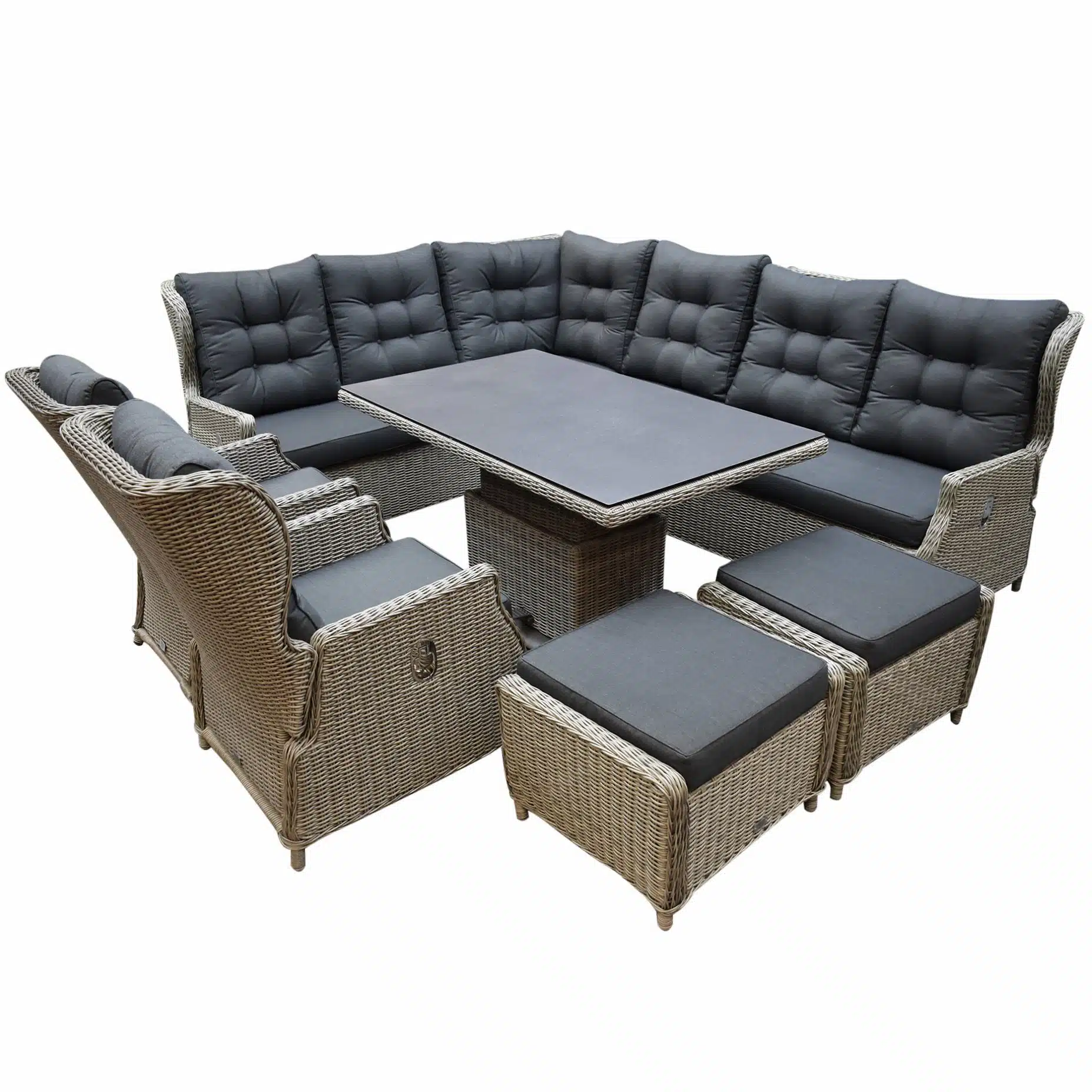 Ibiza dining verstelbare hoek loungeset 9 delig grijs met verstelbare tafel