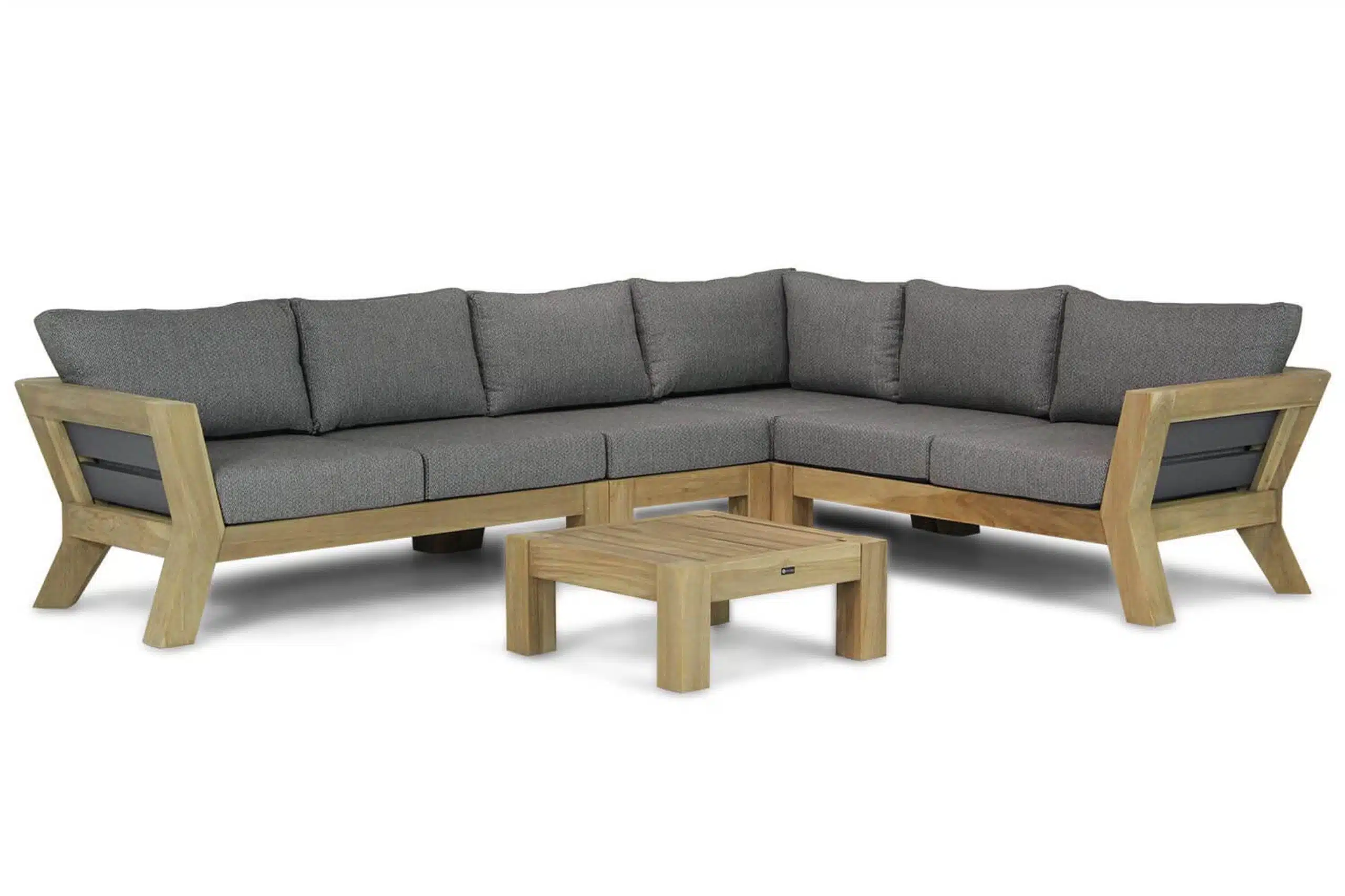 Riviera hoek loungeset 6 personen | aluminium + teak | antraciet | 3-delig – 327x252cm