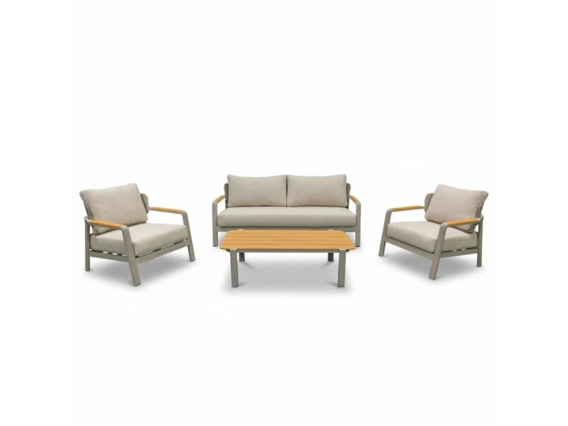 Montana stoel-bank loungeset 5 personen incl. tafel | aluminium + teak | beige | 4-delig