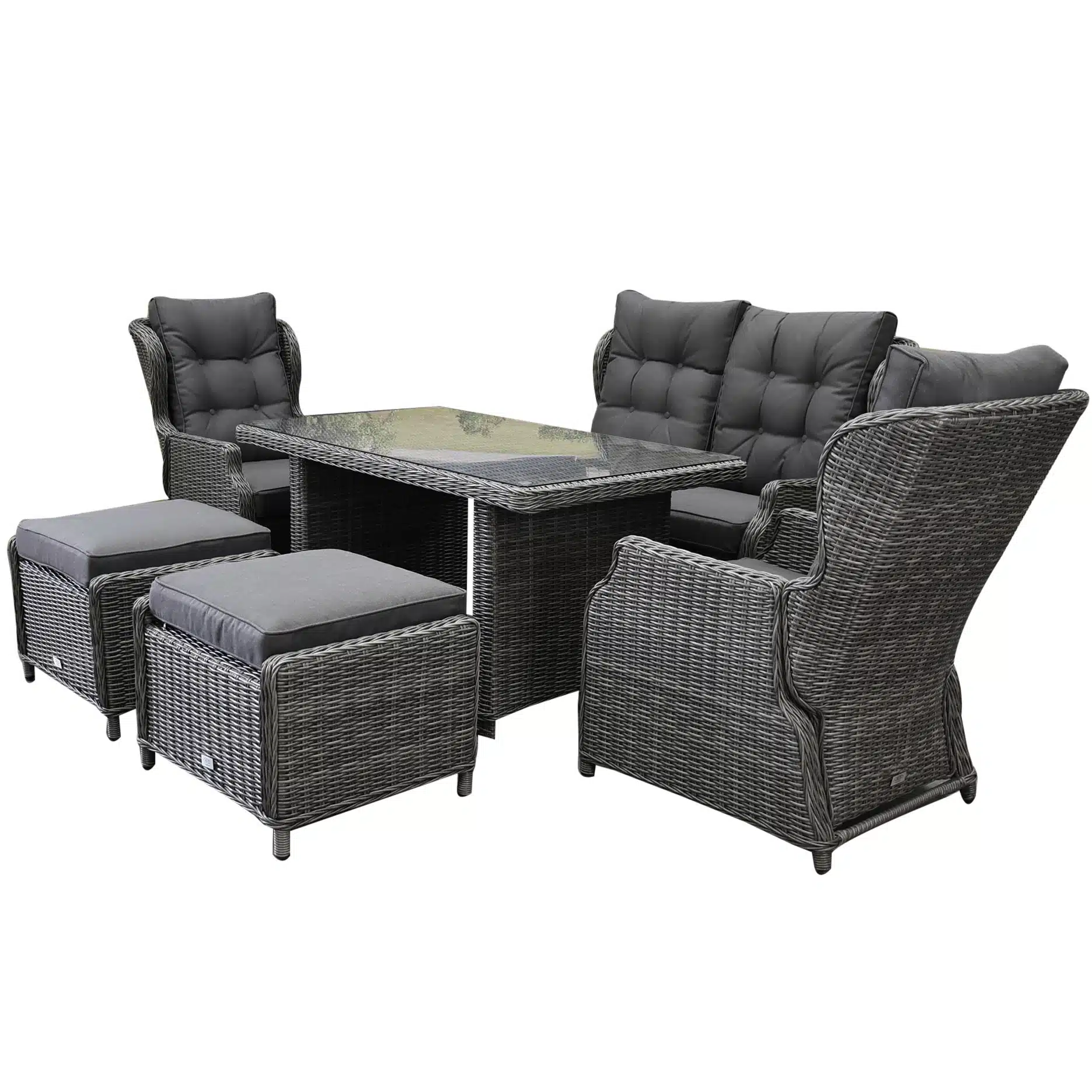 Dallas stoel bank loungeset 6 delig verstelbaar antraciet