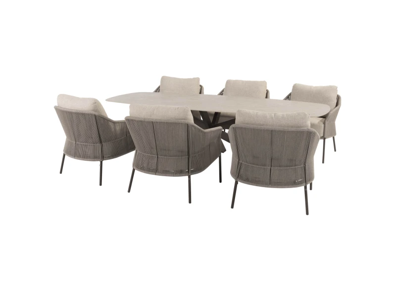 Nevada Sardinia barrel low dining tuinset 7 delig 250x105xH69 keramiek sabia panna latte 4 Seasons Outdoor