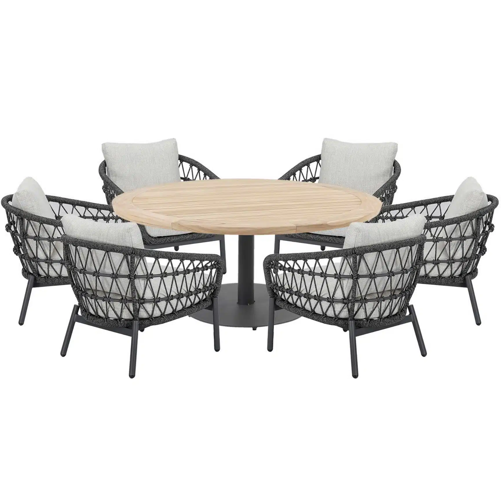 Arezzo Saba low dining tuinset 160xH75 cm rond 7 delig teak rope