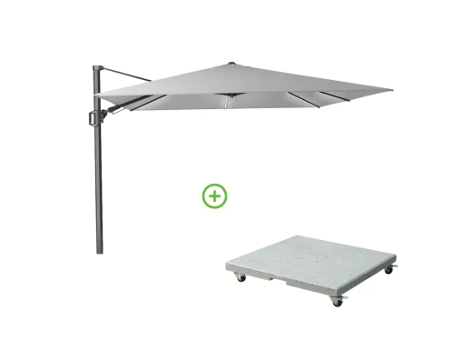 Challenger Tยฒ zweefparasol – premium doek | 300x300cm met Modena parasolvoet 90kg | Manhattan