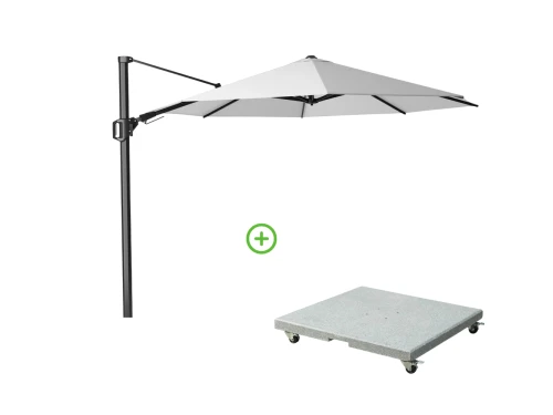 Challenger T¹ zweefparasol – premium doek | 350x350cm met Modena parasolvoet 120kg | Manhattan