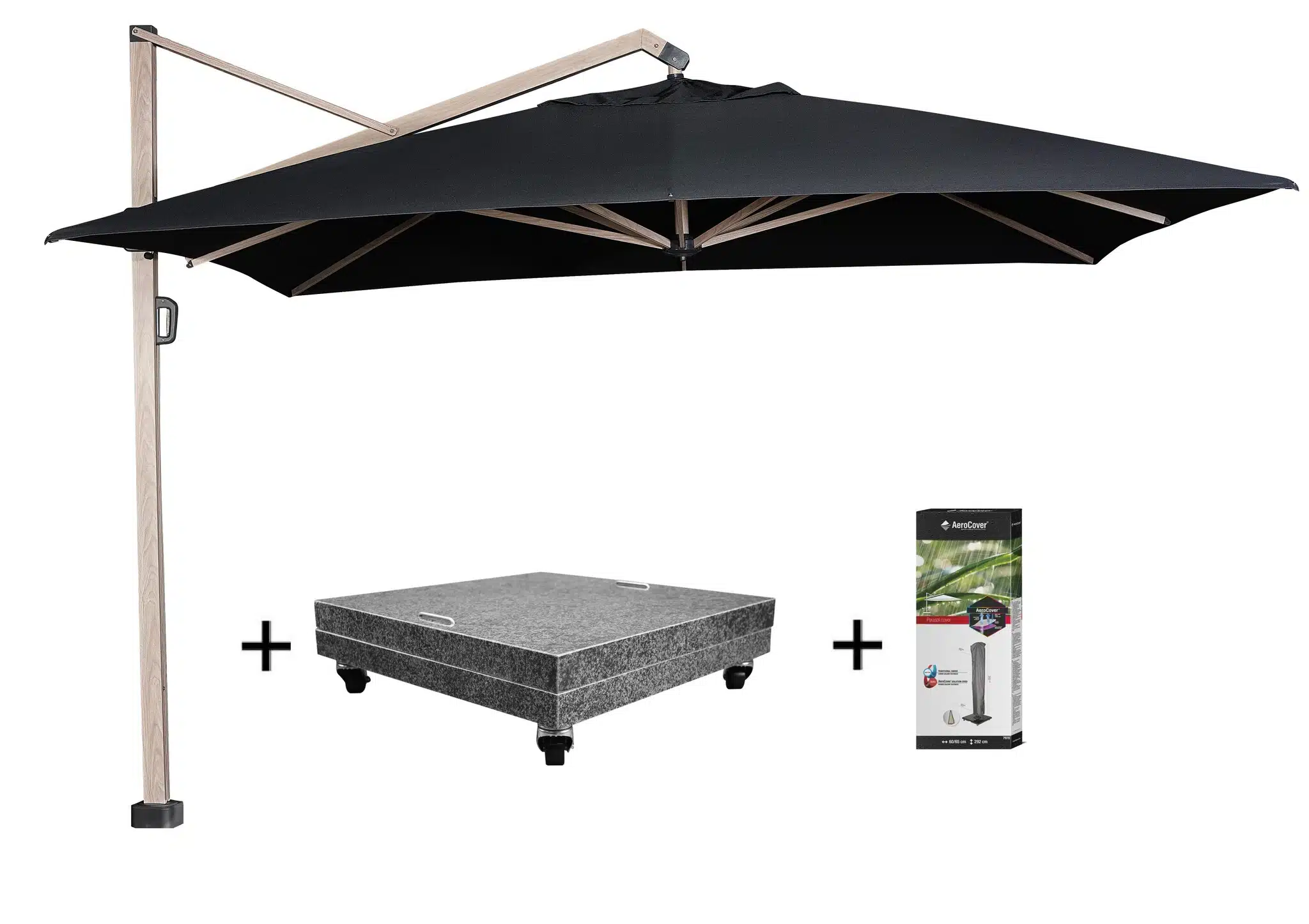 Icon premium zweefparasol 400×300 cm oak mast faded black met 150 KG voet en hoes