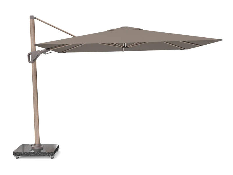 Nexus Tยฒ zweefparasol – premium doek | 300×300 met Monza parasolvoet 90kg | Manhattan