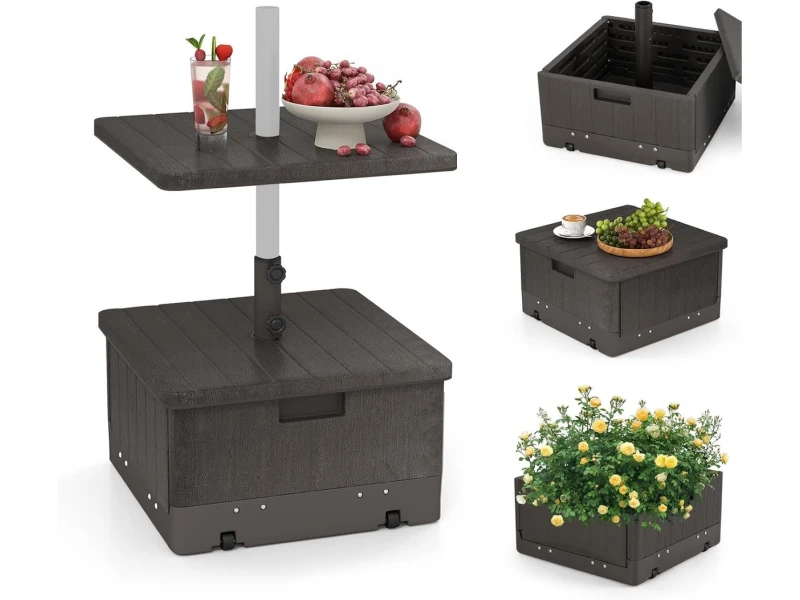 Verzwaarbare Parasolvoet met Wielen en Tafelblad, Vulbaar tot 80 kg