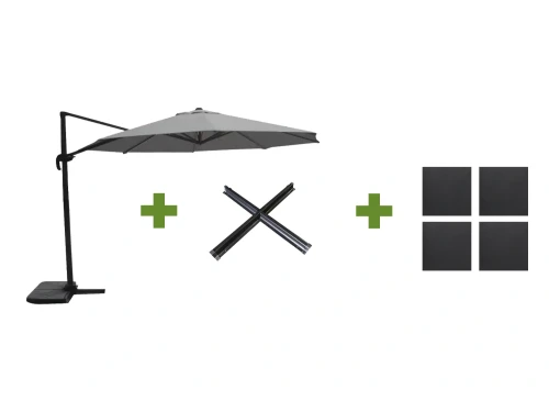 Grote Zweefparasol VirgoFlex Antraciet 3x3m met Kruisvoet en Parasolvoettegels