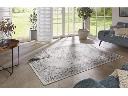Omkeerbaar Buitenkleed Grijs-Crรจme 120×170 cm – Vochtbestendig Antislip Tapijt