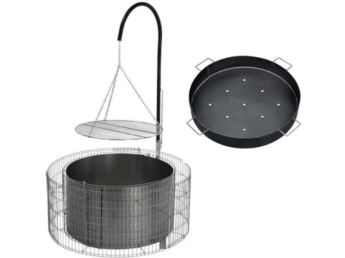 Vuur- en grillplaats van schanskorven met kolenschaal – 92/72 cm
