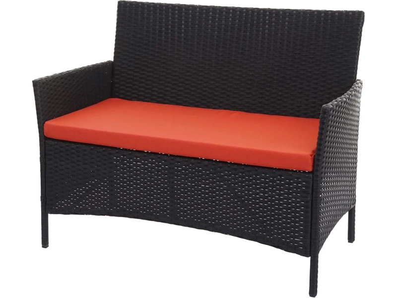 Tuinbank Polyrotan Zwart met Terracotta Kussen – Duurzaam en Comfortabel