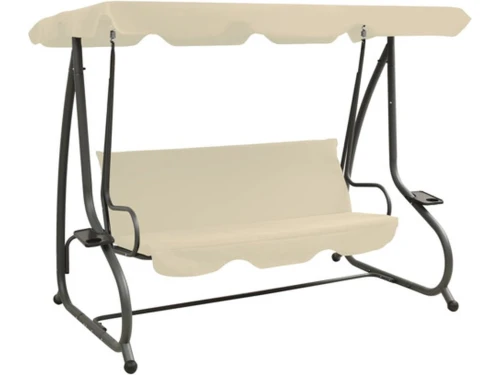vidaXL Tuinset – Schommelbank – Schommelbank met prieel converteerbaar crรจmewit