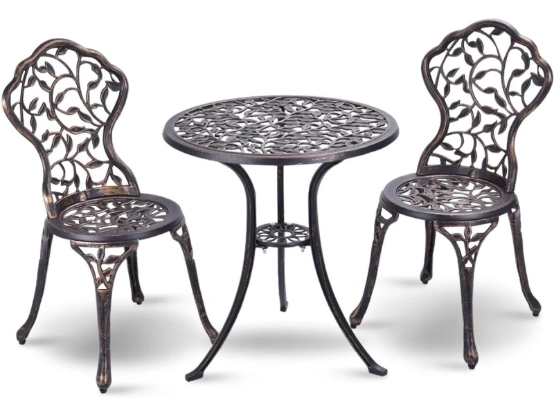 Bistroset Tafel met 2 Opvouwbare Stoelen in Antiek Brons Metaal
