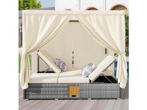 Luxe Dubbel Acacia Houten Zonne-eiland Ligbed met Dak 2