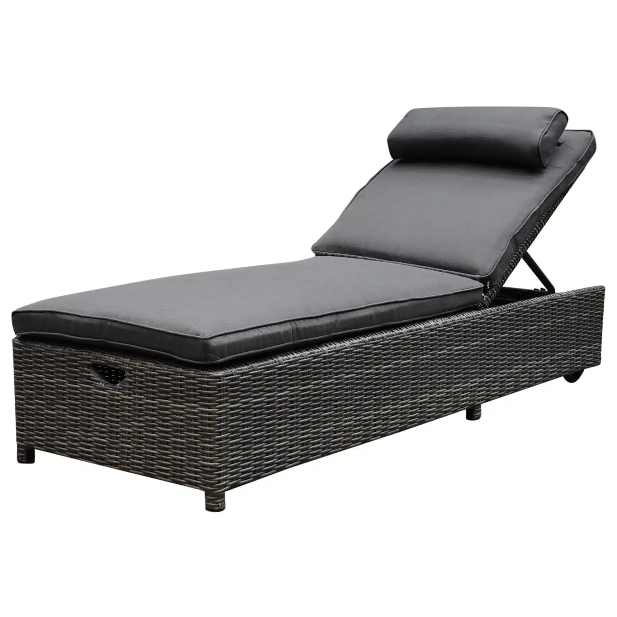 The Living Store Ligbed PE Rattan – Grijs – 182x118x63
