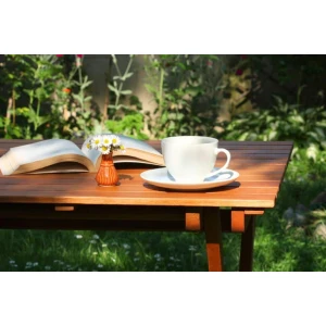 Bij een houten tuintafel kan dit weer anders zijn. Een kenmerk van hout is namelijk dat het makkelijk bewerkbaar is. Je kan dus een houten tuintafel lichtjes opschuren en vervolgens in een andere kleur verven of lakken. Met een houten tuintafel kan je dus al meerdere kanten op wat betreft de kleur van de tuintafel.
