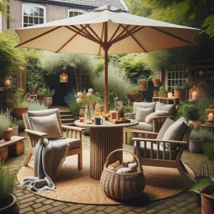 Met de juiste verlichting verandert je terras in een warme en uitnodigende plek. Kies voor zachte LED strengen over de parasol of voor losse tafellampjes die niet te fel zijn. Een dimbare lichtbron maakt het mogelijk om de sfeer aan te passen van een gezellige borrel tot een rustige avond onder de sterren. Vergeet ook solar opties niet die duurzaam en makkelijk in gebruik zijn