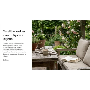 Dankjewel dat je mee bent gegaan op deze ontdekkingsreis naar gezellige hoekjes buiten. Je hebt inspiratie opgedaan over basiskeuzes, laagjes, privacy, seizoenen, persoonlijke accenten, delen met anderen en duurzame oplossingen. Alles wat je nodig hebt om van je buitenplek een warme toevlucht te maken ligt al binnen handbereik. Begin klein en bouw stap voor stap verder, want vaak is een klein gebaar de start van iets groots.