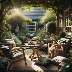 Tuinmeubelen spelen een subtiele rol bij het creรซren van comfort en sfeer. Een set comfortabele stoelen of een bank nodigt uit tot gesprek en lang blijven hangen. Let op schaal en materiaal zodat meubels passen bij de beplanting en het terras.