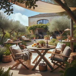 Investeer in lantaarns en solarlampjes die sfeer brengen zonder gedoe met snoeren of stroom. Kaarsen in windlicht geven intieme hoekjes een warme gloed. Gebruik manden en kratjes voor borden en bestek, dat geeft een rustieke en gezellige uitstraling. Voor privacy en beschutting kies je klimplanten of een rietscherm dat meteen mediterrane warmte toevoegt.