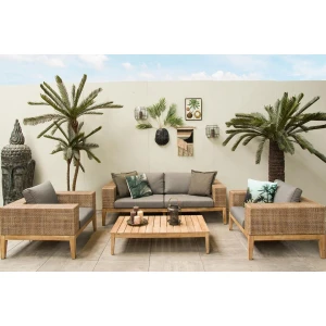 In plaats van voor een kunststof loungeset te kiezen heb je met een bamboe loungeset een mooie natuurlijke set, die warm aandoet en een prachtige bruine kleur heeft. Het materiaal heeft veerkracht, waarmee het bovendien zeer comfortabel zit en een hoge draagkracht heeft.