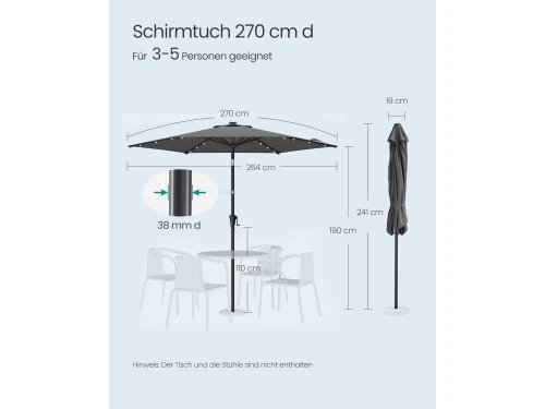 Balkon- & Tuinparasol Depauwonen LED Solar Parasol ร 270 cm