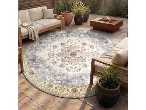 Rond vintage buitenkleed – Santo Mandala Blauw/Grijs – ร 230cm