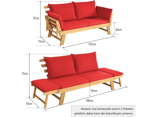 Tuinbank met Ligfunctie 198 x 75 x 75 cm
