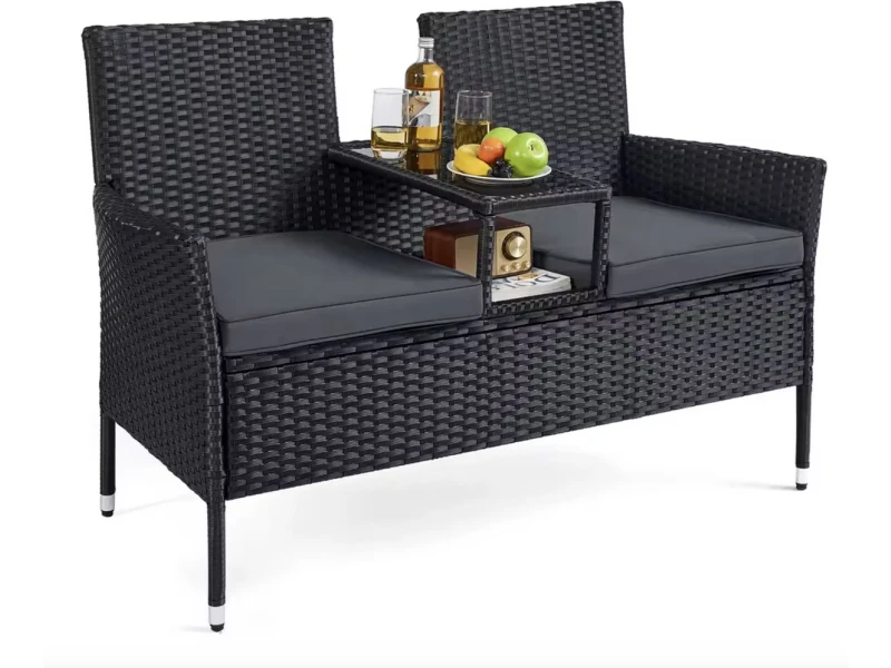 Ligstoel en schommelbank met weerbestendig ontwerp – Beige 360ยฐ schommelbeweging