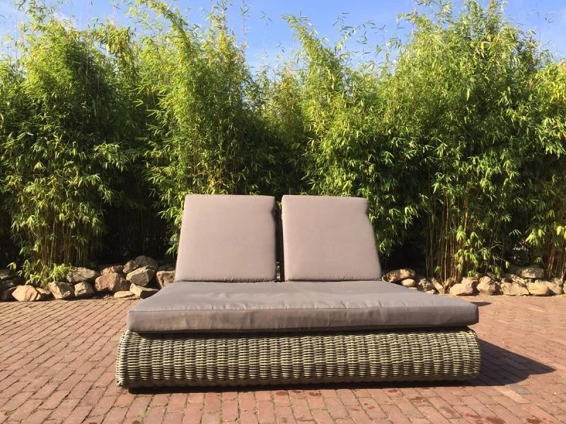 Ligbed Corsica naturel onderstel en taupe kussens