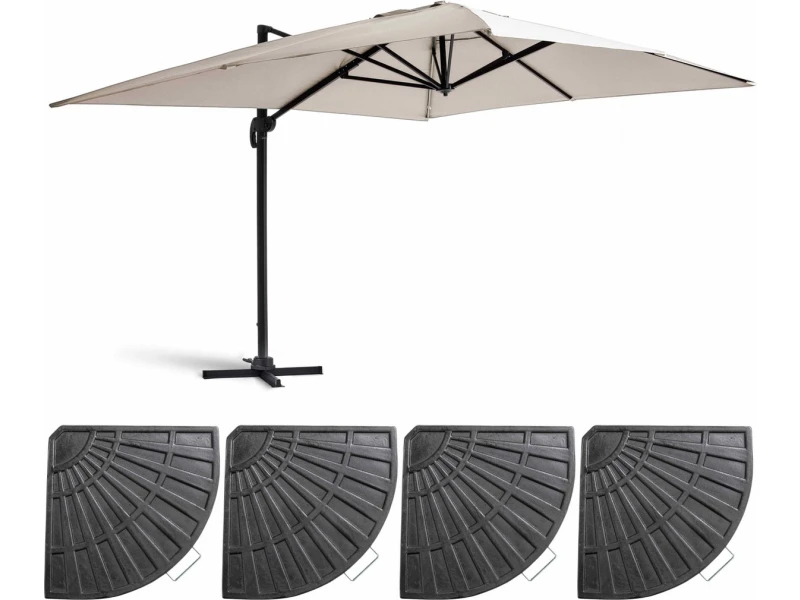 Oviala – Zweefparasol 4x3m 360ยฐ kantelb. + 4 vulbare tegels