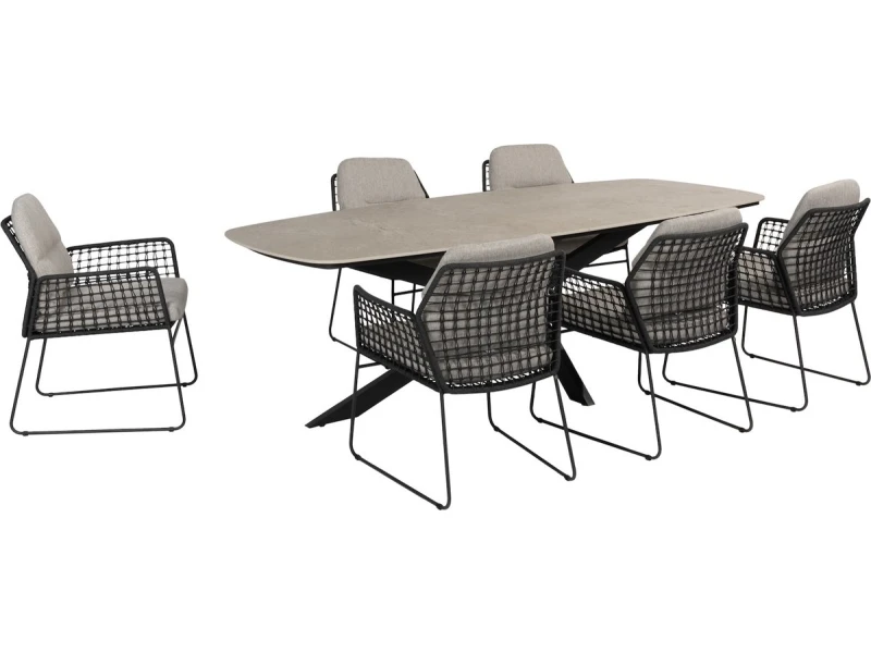 Rhodos Manolo dining tuinset keramiek 240xH103 cm 7 delig antraciet Taste 4SO