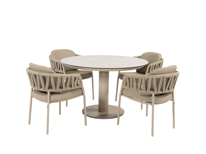 Calma Sarah dining tuinset 120xH75 cm rond 5 delig keramiek latte Taste 4SO