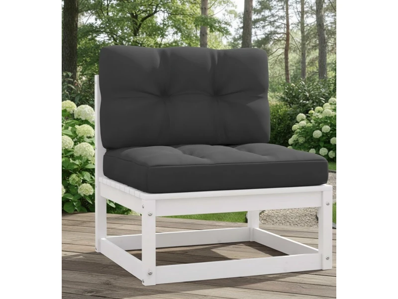 Tuin Loungemiddenbank Modulair Wit met Antraciet Kussen | Massief Grenenhout