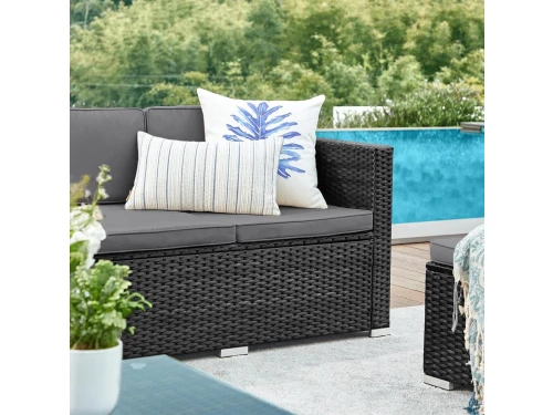 Ligstoel 200x70x33 cm Poly Rotan met Wielen en Kussens
