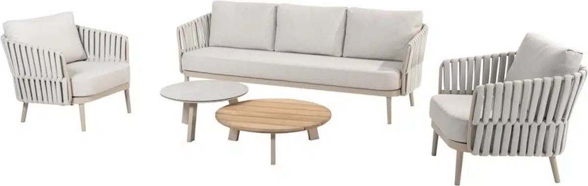 Het frame is robuust en licht van gewicht en biedt een stabiele basis zonder zwaar aan te voelen. De Taupe rope kussens van Taste 4SO zijn duurzaam afgewerkt en houden vorm dankzij hoogwaardige vulling. Het materiaal is weerbestendig en voelt prettig aan op de huid zodat lange gesprekken en luie middagen comfortabel verlopen.