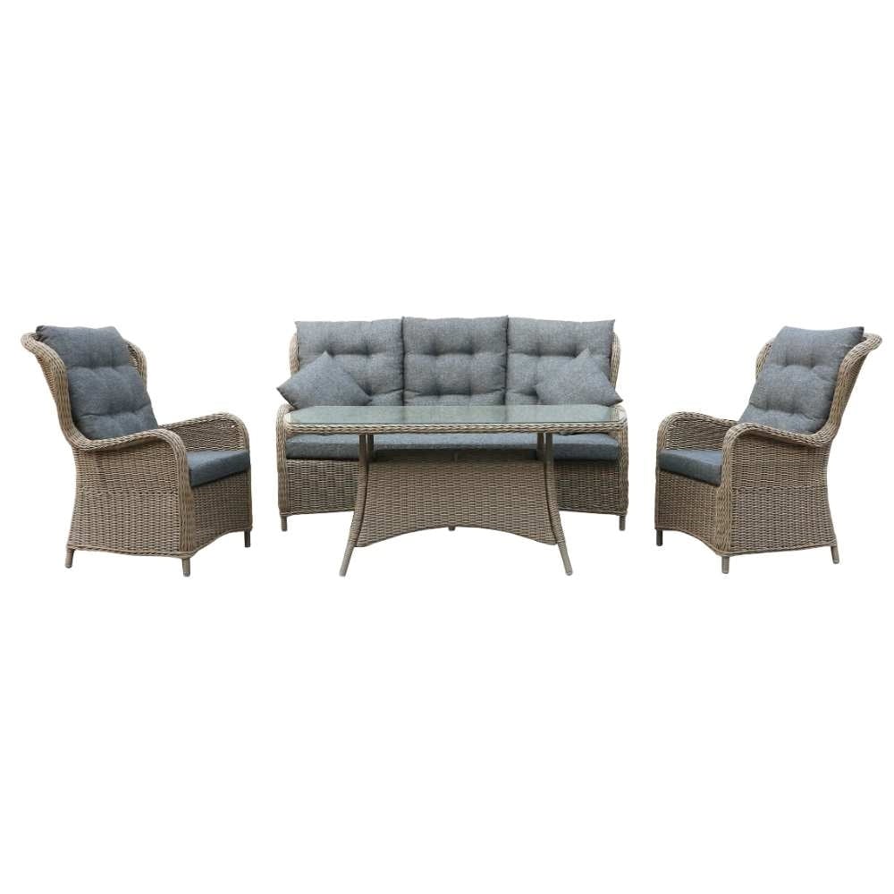 Samengevat biedt dit vierdelige zitmeubel een fraaie balans tussen stijl, comfort en onderhoudsgemak. Kies voor deze set wanneer je een betrouwbare en uitnodigende buitenzitplaats wilt creรซren voor vijf personen, met een tijdloze look en duurzame materialen.