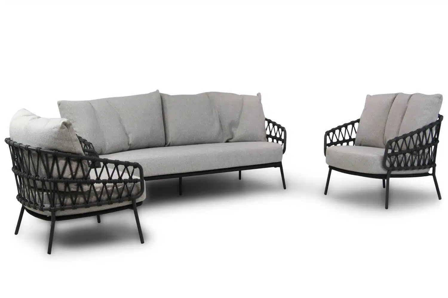 Beleef het ultieme zomergevoel met de 4 Seasons Calpi stoel-bank loungeset 3-delig! Stel je voor dat je op een zwoele avond in je tuin zit, omringd door de geur van bloeiende bloemen en het zachte geruis van de bladeren. Deze loungeset, uitgevoerd in een verfijnde grijs-antraciet tint, vormt de perfecte aanvulling op jouw buitenruimte. Het elegante design en de hoogwaardige afwerking maken de Calpi niet alleen een meubelstuk, maar een waar statement.