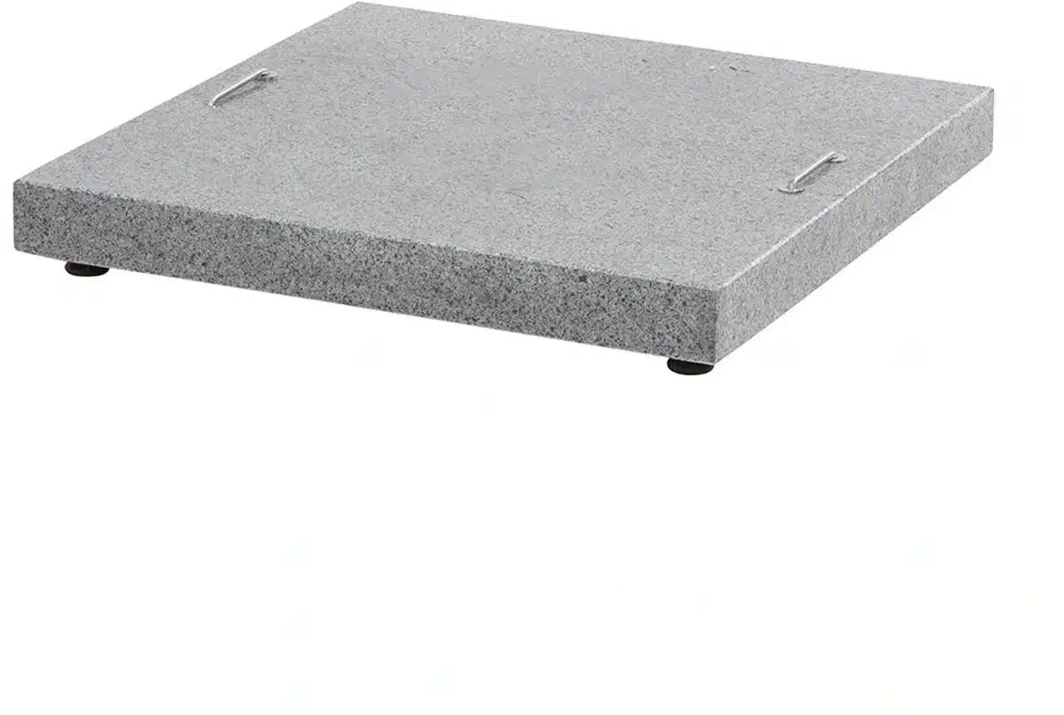 Degelijke granieten voet van 125 kg die mijn parasol betrouwbaar op zijn plaats houdt, zelfs bij stevige wind. De flamed finish geeft een nette, stijlvolle look en de afwerking voelt degelijk en duurzaam aan.