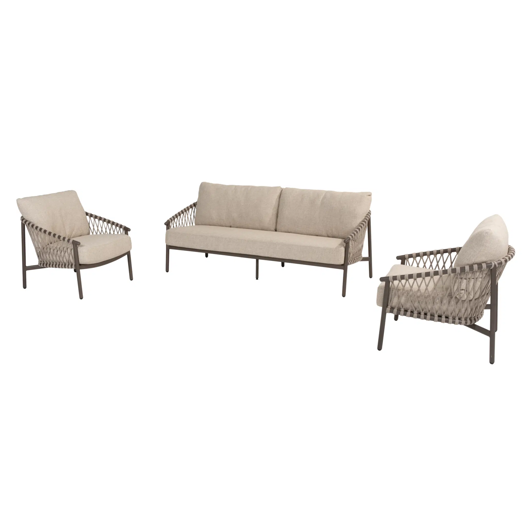 Beleef de ultieme zomerervaring met de Allora stoel bank loungeset van 4 Seasons Outdoor. Stel je voor dat je op een warme avond heerlijk achterover leunt in deze 3-delige loungeset, omringd door het zachte flonkerlicht van de ondergang. De stijlvolle en warme bruine tint geeft iedere buitenruimte een uitnodigende uitstraling, perfect voor een ontspannende avond met vrienden of familie.