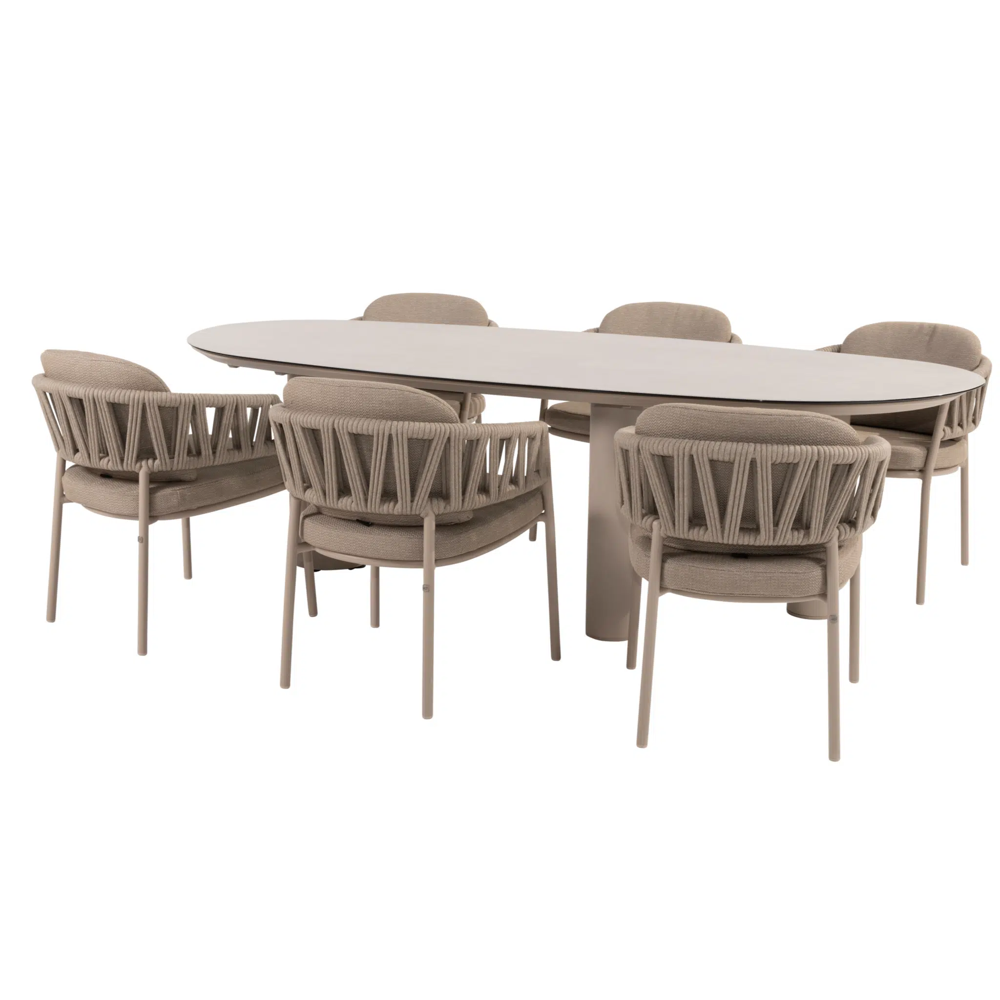 De Denia Calma dining tuinset is van het merk 4 Seasons Outdoor. De dining tuinset bestaat uit een Denia dining tuintafel met een keramiek blad van 240×105 cm en 6 Calma dining tuinstoelen in de kleur latte. Wij geven 5 jaar garantie op de tuinset.