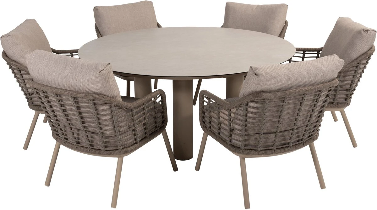Donato Ø160 cm low dining met 6 Puglia stoelen