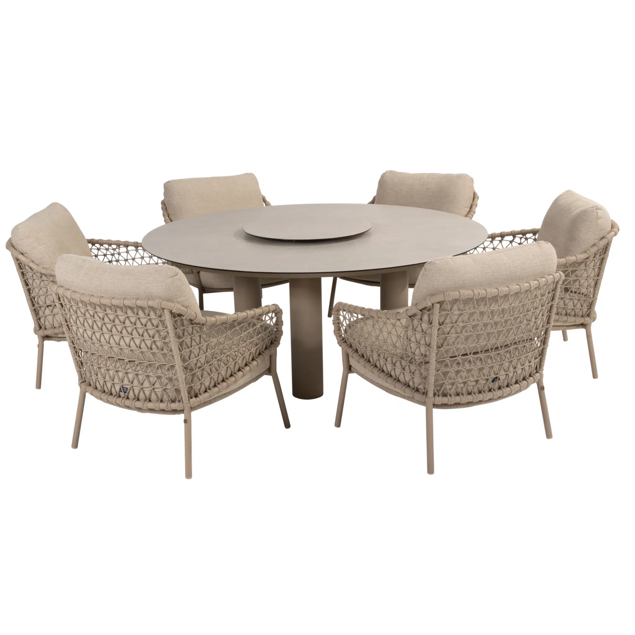 Beleef het ultieme zomerse gevoel met de Donato Sardinia low dining set! Zie jezelf al zitten op een zonovergoten middag, omhelsd door de blije geluiden van vrienden en familie die genieten van een smakelijke maaltijd. Deze prachtige 8-delige set is ontworpen om jouw buitenruimte te transformeren in een perfecte plek voor gezelligheid en ontspanning. De set bevat een elegante ronde tafel van 160 cm, vervaardigd uit hoogwaardig keramiek in een warme latte kleur, die een sfeervolle ambiance creëert.