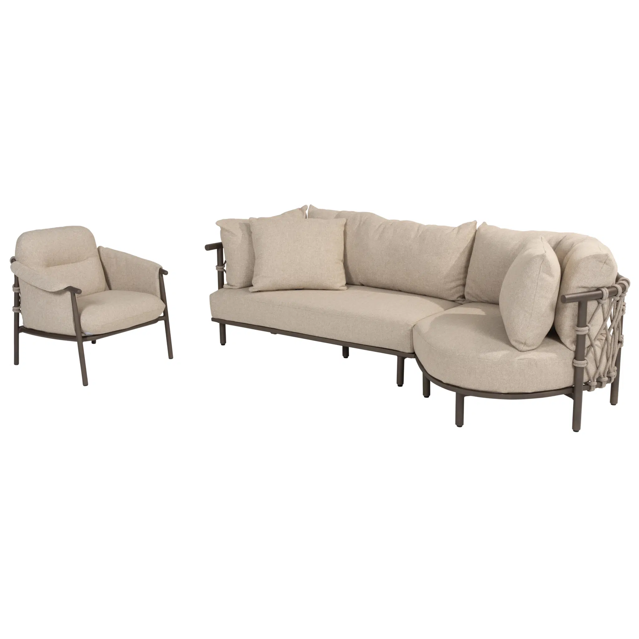 Gemaakt van hoogwaardig aluminium, combineert deze loungeset duurzaamheid met een verfijnd uiterlijk. Het gebruik van robuuste materialen garandeert dat je langdurig kunt genieten van deze set, ongeacht het weer. De zachte, organische lijnen geven een moderne flair aan je buitenruimte en nodigen je uit om urenlang te loungen en te genieten van de frisse lucht. Ideaal voor gezellige barbecue-avonden of rustige middagen met een goed boek.