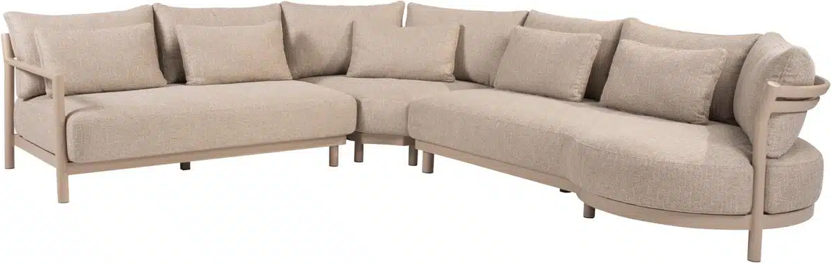 De Mykonos modulaire hoek loungeset 3 delig in de kleur latte van 4 Seasons Outdoor is een stijlvolle aanvulling op elke buitenruimte. Strakke lijnen en een ingetogen kleurstelling geven deze set een moderne uitstraling, terwijl het ontwerp uitnodigt tot lang ontspannen. De hoekopstelling biedt een gezellige zithoek die geschikt is voor zowel kleine terrassen als ruime tuinen.