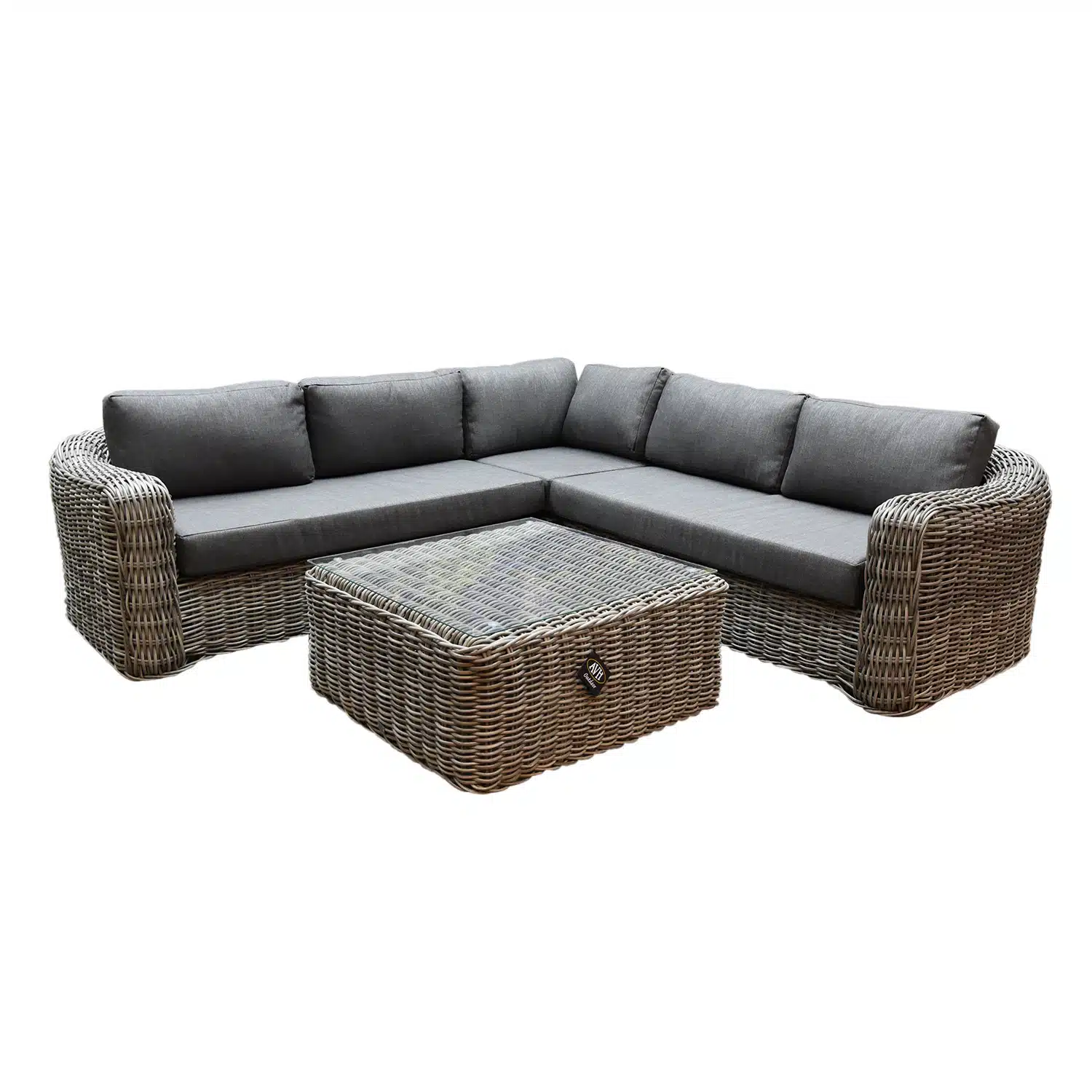 Stel je voor: een warme zomeravond, een zachte bries en zonnestralen die de lucht in een gouden gloed hullen. De Las Palmas hoek loungeset 4-delig in grijs wicker creรซert de ideale omgeving om deze prachtige momenten te beleven. Deze loungeset uit de AVH-collectie doet niet alleen recht aan de esthetiek van je buitenruimte, maar biedt ook het comfort dat je nodig hebt om volledig te ontspannen.