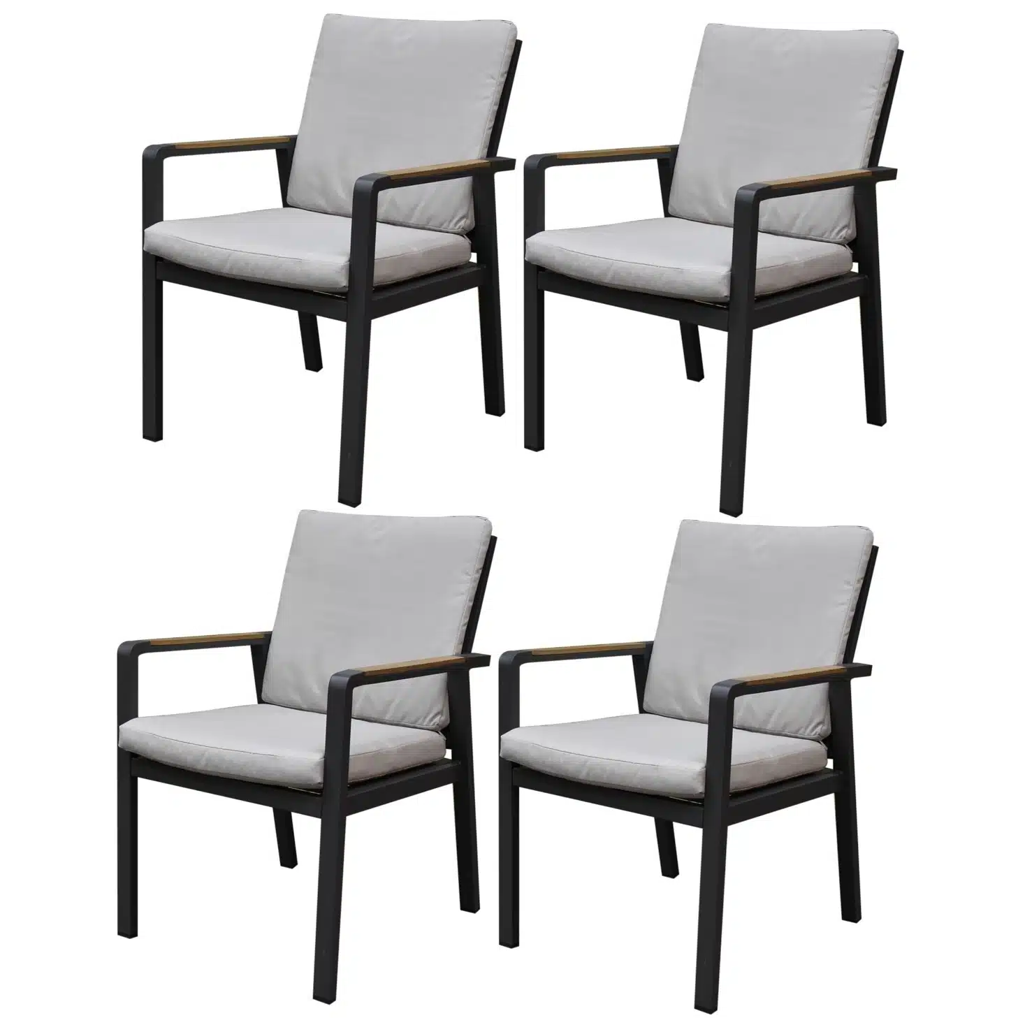 Beleef het ultieme zomergevoel met de set van 4 Lola dining tuinstoelen, ontworpen voor de perfecte buitenervaring. Stel je voor dat je met vrienden en familie rondom de tafel zit, terwijl de zon langzaam ondergaat en de sterren aan de hemel verschijnen. Deze prachtige tuinstoelen in een chique antracietkleur zijn vervaardigd uit duurzaam aluminium, waardoor ze niet alleen stijlvol zijn, maar ook ideaal voor buitengebruik.