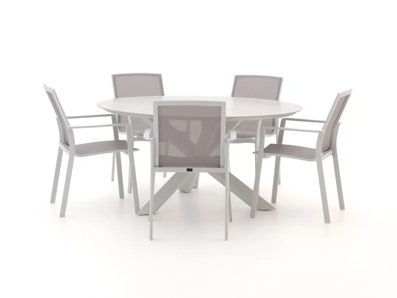 Bellagio Dranera/Lodola dining tuinset 5 zitplaatsen De Bellagio Dranera/Lodola dining tuinset is een prachtige aanvulling voor elke tuin. Met zijn elegante witte en ecru tinten straalt deze set een moderne en frisse uitstraling uit. Het tafelblad van sintered stone is niet alleen kras- en vlekbestendig, maar ook bestand tegen de elementen, waardoor het er jarenlang als nieuw uitziet. De stoelen zijn gemaakt van textileen, dat zich comfortabel naar je lichaam vormt, zelfs als je wat langer blijft zitten. Deze set is ideaal voor gezellige avonden met vrienden of familie in je tuin. Zet de barbecue maar aan, en geniet van een heerlijke maaltijd aan deze stijlvolle tafel! Eigenschappen * Stapelbare stoelen: De stoelen zijn eenvoudig op elkaar te stapelen, wat ruimte bespaart wanneer je ze niet gebruikt. * Sintered stone tafelblad: Dit materiaal is kras- en vlekbestendig en beschermt tegen vlekken van eten en drinken dankzij de niet-poreuze structuur. * Textileen zitting: Vormt zich naar je lichaam voor een comfortabele zit, zelfs tijdens lange diners. * Aluminium frame: Dit materiaal kan niet doorroesten en is onderhoudsarm, ideaal voor buitengebruik.
